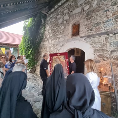 Με σεβασμό και αδελφική αγάπη, σας προσκαλούμε να επισκεφθείτε τον Ιερό αυτό τόπο, να προσευχηθείτε ενώπιον της Ιεράς Εικόνος της Παναγίας μας, να λάβετε ευλογία από την ευλογημένη αδελφότητα και να γευθείτε λίγες στιγμές ουράνιας ειρήνης.